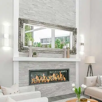 The Arcus Overmantle Black wall mirror looks stunning above the fireplace.